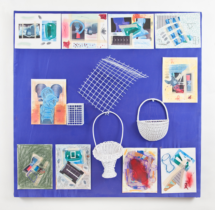 Ink, pastel, acrylic, plastic, satin, resin, black beans